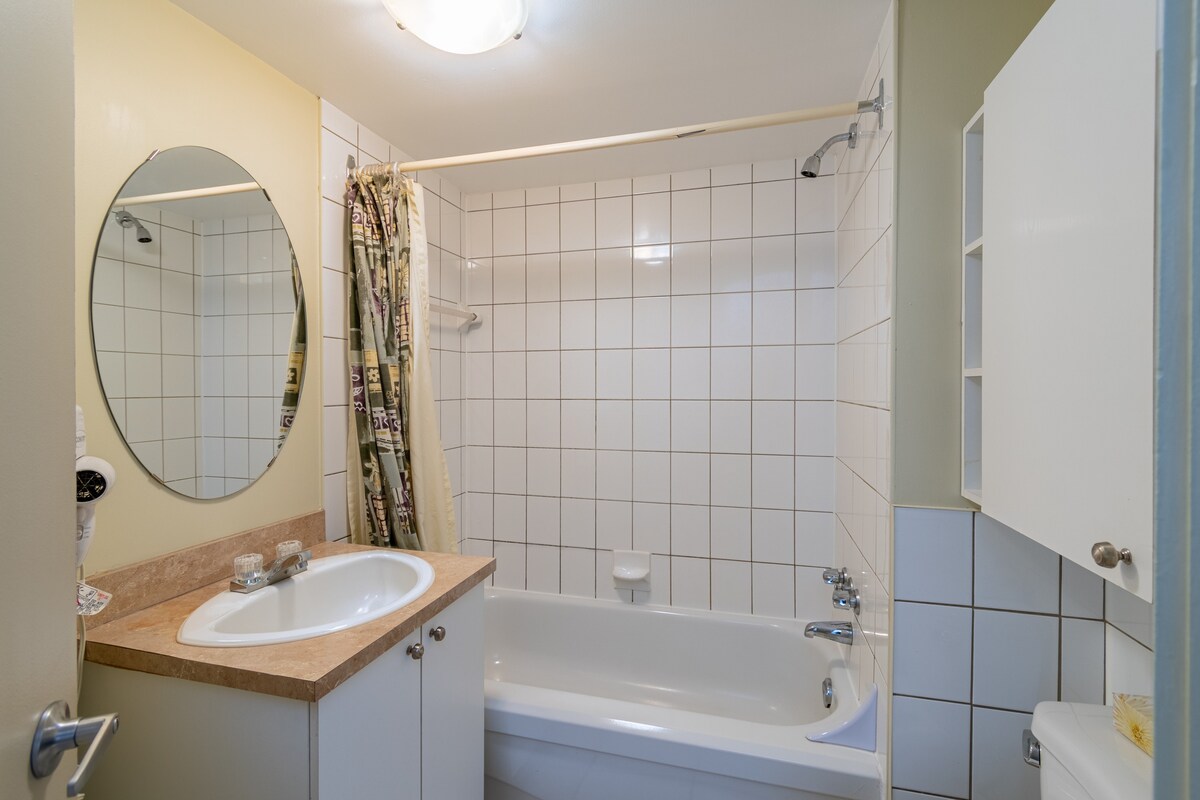 – A full bathroom with a shower/tub;
